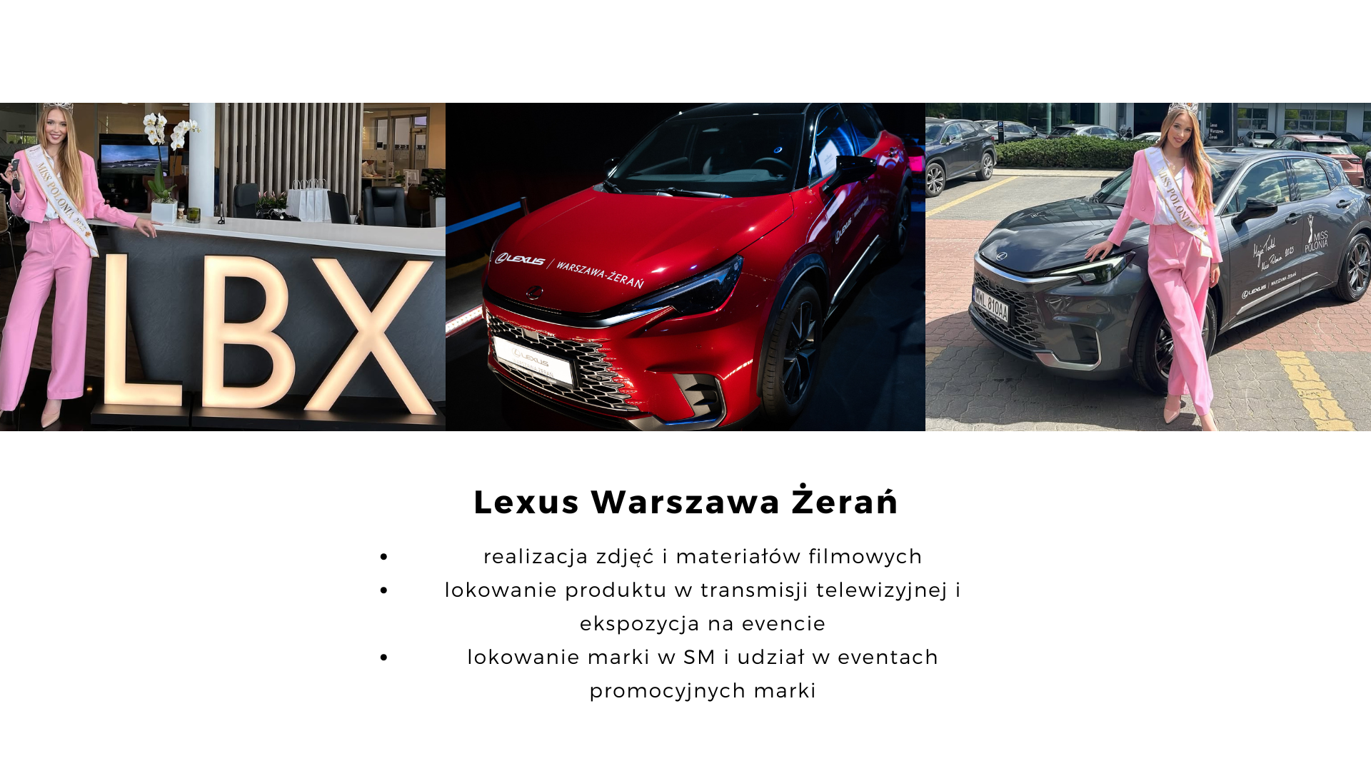 W ramach realizowanych przez nas wydarzeń: Miss Polonia, GRAND LOOK MODEL i THE LOOK OF THE YEAR realizujemy szereg działań sponsoringowych dla firm i marek.